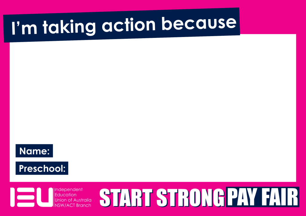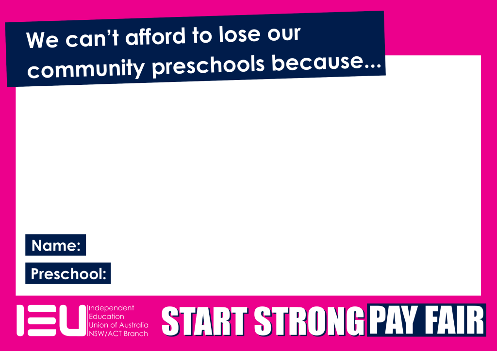 It’s time to let the world know why you’re taking action for community preschools. Take a photo using this selfie sign and post it on social media. Don’t forget to tag the IEU on Facebook and Instagram!